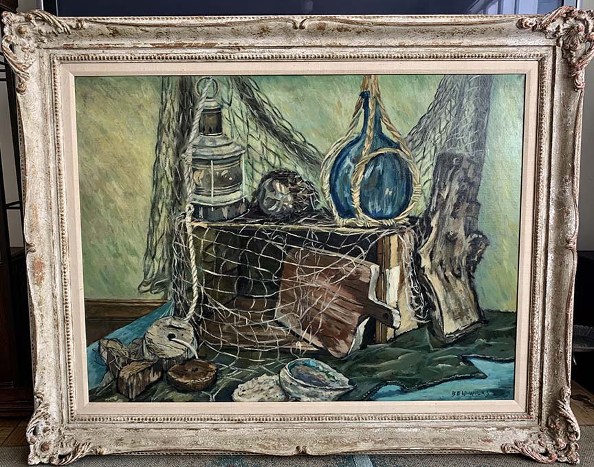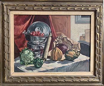 Ben Wilks 1914-2001 Ben Wilks was born in Toronto, Canada. He immigrated to Los Angeles, California as a child and became a naturalized citizen of the United States. Mr. Wilks entered the U.S. Army ROTC during World War II and attained the level of Captain. During that time he married Emily Loveman and they had their first daughter, Diana, in 1945. He had planned on being a career army officer, but had to be medically discharged due to a physical condition. His second daughter, Lisa, was born in 1952. With a family to support and opportunities to choose from through the G.I. Bill, he enrolled in the Howard Jepson Art Institute. He also opened a frame shop, which later became Creative Artcraft on La Cienega Boulevard in Los Angeles. Besides individual customers, he framed for museums and galleries throughout the greater Los Angeles Area. He provided frames on consignment for Aaron Brothers before it was a chain store and afterward. He touched up and repaired damaged artwork for the Los Angeles County Museum. Now and then a celebrity would come in for custom framing. Mr. Wilks painted with art student groups, en plein air, and in his own studio behind his residence on Rimpau Boulevard in Los Angeles. He also taught art classes in that studio on Wednesday evenings from the 1950's until his retirement in the 1990's. He was a member of the Pacific Art Guild. EXHIBITIONS 1947 Artists of Los Angeles and Vicinity 8th Annual Exhibition, Los Angeles County Museum 1947 18th Annual State-Wide Art Exhibition, Civic Auditorium, Santa Cruz 1947 Denver Art Museum 1948 Santa Paula Union High School Art Rooms, 12 Annual Art Exhibit 1948 Exhibition of Painting and Sculpture by Artists of Los Angeles and Vicinity, Greek Theater, Griffith Park 1948 Los Angeles County Museum Annual Exhibition, Artists of Los Angeles and Vicinity 1948 Chabot Art Gallery, one-man showing 1948 Art of Heroes Exhibit, The American Legion, Reseda, California 1949 Santa Paula Union High School Art Rooms, 12 Annual Art Exhibit 1949 California Centennials Exhibition of Art, Los Angeles County Museum 1949 Exhibition of Arts, Los Angeles County Fair 1949 Exhibition of Painting and Sculpture by Artists of Los Angeles and Vicinity, Greek Theater, Griffith Park 1949 Arizona State Fair 1951 Anthes Gallery, two-man showing with Howard Bradford, 767 La Cienega Blvd., Los Angeles 1950 National Orange Show, San Bernardino, California 1950 Oakland Art Gallery 1950 Fifth Newport Harbor 1950 Fraymart Gallery in conjunction with Arts & Architecture Division, Arts, Science & Professions Council, Crossroads of the World, Los Angeles 1953 California State Fair and Exposition, Sacramento 1953 38th Annual National Orange Show, San Bernardino, California 1953 Denver Art Museum Annual Exhibition 1959 5th Annual Art Fair and Purchase Prize Exhibition, Art Committee of the Westside Jewish Community Center, Los Angeles 1960 6th Annual Art Fair and Purchase Prize Exhibition, Art Committee of the Westside Jewish Community Center, Los Angeles 1962 The Ivory Tower Art Gallery, Santa Monica 1971 Los Angeles Public Library Memorial Branch Exhibition 1987 Pacific Art Guild Juried Show, Los Angeles 1989 Pacific Art Guild Juried Show, " 1992 Pacific Art Guild Juried Show, " 1993 Pacific Art Guild Juried Show, " Year unknown Paintings by Veterans, Raymond & Raymond Galleries, Beverly Hills.