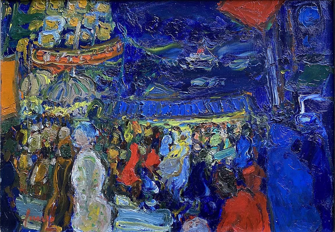 Jean Fusaro was born in Marseille, France in 1925. Fusaro studied at the Beaux-Arts de Lyon from 1941 to 1946. He got acquainted with André Cottavoz and Jacques Truphémus, among others. In 1948, he exhibited for the first time at the Chapel of the Lycée Ampère in Lyon with the Sanziste group, including his friends André Cottavoz, James Bansac, Jacques Truphémus, and Pierre Coquet. Sanzism, an art expression between figurative and abstract, wanted to decompartmentalize traditional art and reject impressionism, fauvism, and cubism. He was a quintessential artist in what is referred to as “L’Ecole de Lyon” alongside André Cottavoz and Jean Couty. In 1953, he received the Fénéon prize, and in 1957, the prize of the city of Marseille. Since the end of the 1990s, Jean Fusaro had been part of the Estades Gallery’s permanent collection. His work is exhibited in the four sites of the Gallery, in Paris, Lyon, Toulon, and Baden-Baden. His ethereal style of soft, barely glazed colors is popular in Japan. His work has been exhibited regularly since the 1970s. Fusaro’s art has been shown in various countries: Switzerland, Luxembourg, England, and the United States. From 1990 to 2010, he dedicated himself to mural painting, creating 19 wall paintings for the Church of Saint-Jacques-des-Arrêts in the Lyon diocese. In November 2017, Jean Fusar, was awarded the medal of Chevalier des Arts et Lettres.