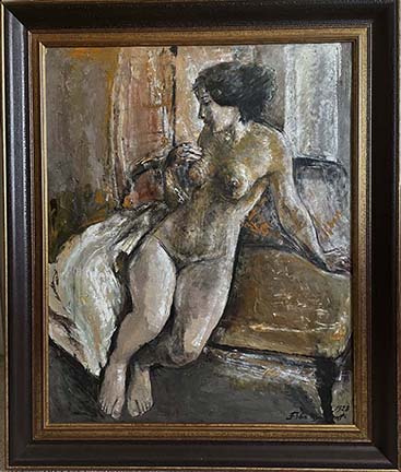 GEORGES DAYEZ "FEMME SE COIFFANT" OIL ON CANVAS, SIGNED, TITLED FRENCH, DATED 1955-56 25.5 X 32 INCHES SOLD PASCAL JARRION NEW WORKS