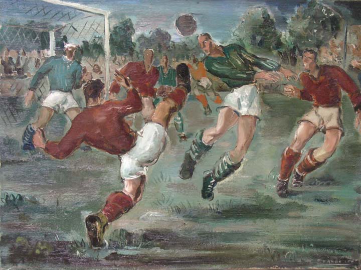 | Paul Daxhelet 1905-1993) Belgian artist Paul Daxhelet was born in 1905 in Liège. A multi-talented and diverse artist, Daxhelet first worked as an engraver. However, he was also a skilled draughtsman and painted in both oils and watercolors. He began his studies at the Académie des Beaux-Arts in Liège, where he was the pupil of François Maréchal and Jacques Ochs, before advancing to the Academie Julian in Paris in 1926. He also received instruction from Hermann-Paul and Raymond Renefer. Daxhelet later became an instructor at the Liège academy, where he taught from 1957-1970. In addition to working in diverse mediums, Daxhalet was attracted to a wide variety of subject matter for inspiration. The sporting world, in particular boxing, captured his attention and became a favored subject of many paintings. His extensive world travels throughout India, the Far East, South America, Polynesia, Morocco, Senegal and East Africa also sparked his creative expression. His use of broad brushstrokes and bright colors contributed to the growing abstraction of his work over his life. In some later instances, his paintings took on a surrealist quality that was highly regarded. Daxhelet is listed in Dictionnaire des Peintres, Sculpteurs, Dessinateurs, et Graveurs by Benezit, and Davenport’s Art Reference Guide. |