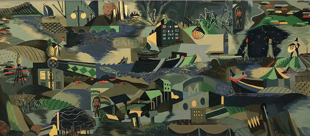 Tadashi Sato 1923-2005 Born February 6, 1923 in Kaupakalua, Maui, Sato Tadashi Sato is known for his nonobjective paintings, mosaics, and murals, some inspired by his experiences, including skin-diving, during his boyhood in Hawaii. His goal with his artwork is convey a sense of serenity, balance and light and space. Sato had a father who was a pineapple laborer, merchant, and a calligrapher, and his grandfather was a sumi-e artist. Sato attended Kamehameha III School and Lahainaluna High School. When Tadashi Sato was in the third grade, the entire school held an assembly around the flagpole and he received a prize of $2.50 for a poster contest. He attributes that event to being his initial inspiration to pursue art. At Lahainaluna High School, Sato was the cartoonist for the school's annual. Following his graduation from high school, he volunteered to serve in the Army along with many Americans of Japanese ancestry in Hawaii, and trained with the 442 Combat Infantry Regiment. During WWII, Sato reproduced and identified locations on maps translating from Japanese to English. He also served as a translator and interrogator in the New Guinea and Philippine Campaign. Sato returned to Hawaii in 1946 and was employed by the Halekulani Hotel in Waikiki, which later would purchase many of his paintings. Sato attended classes at the Honolulu Academy of Arts from 1946 through 1948 with assistance from the GI Bill. There, he studied with the New York based artist, Ralston Crawford who was teaching at the Honolulu Academy of Arts summer session. Ralston assisted him in obtaining an art scholarship. Encouraged by Crawford and with a scholarship to the Brooklyn Museum School in hand, Sato left Hawaii along with his wife Kiyoko. In New York, he took classes at the New School and Pratt Institute, as well as at the Brooklyn Museum School. At the Pratt Institute he experimented with various materials. During his second year, Sato did not want to be channeled into a professional occupation. Wanting his own personal freedom, he quit and returned to the Brooklyn Museum Art School. To make this change, Sato was required to transfer from vocational to avocational under the GI Bill. This was a turning point in his life. Ralston Crawford also introduced Sato to the modernist painter Stuart Davis in New York, and these two teachers were an important influence on him. "Subway Exit, (New York," 1954), an abstract rendering of a subway turnstile, clearly draws inspiration from Davis' interest in depicting the shapes and rhythms of city life. Where Davis relied on bold colors, Sato already was working with a muted palette of black, gray and white, a range of colors that suited New York City's underground terrain. Though Sato moved away from the hard-edged abstractions of the Precisionists and the cubist-inspired abstractions of Davis, he retained their predilection for depicting flattened forms in space. This is particularly evident in "Captain's Chair" from 1961, in which the flowing, organic chair form floats in the center of the canvas. Overall, Sato spent a total of almost ten years in New York. He painted while traveling between New York, Japan, and the Hawaiian Islands. In 1955, Sato was awarded the McInerny Award and left New York to study in Japan. In two months, Sato consumed his grant money in cameras and equipment in his fascination of the life in Tokyo and returned home. In 1956, he went back to New York and painted and studied with other young American Japanese artists, Satoru Abe, Bumpei Akaji, Boy Okuchikubo, Jerry Okimoto and mentor, Isami Doi. Returning home to Hawaii, Sato struggled to stay afloat in the Hawaiian art community. Through the tough times, he held onto his cultural and family values opening his home to a struggling actor and friend for a bowl of rice and tea from time to time. On one occasion, his friend stopped by wanting to give up his dream of becoming an actor. With the encouragement of the Satos, he auditioned and landed a part in the Broadway play, "Teahouse of the August Moon," starring the British actor and film star Charles Laughton. At a party that was thrown for the cast, Laughton began sharing with a group of friends about his personal art collection. Sato's friend, the new actor, interrupted the conversation telling them about Sato's works. Intrigued, Laughton made arrangements to meet with the artist. Along with an entourage Laughton arrived, purchasing a number of paintings on the spot. From that day, Sato was able to work exclusively as a fine art painter. In 1958 he exhibited at the Willard Gallery in New York and got very good reviews for his works, which at that time were nonobjective and comprised of compositions of hard-edged lines and shapes. Over time his hard edges softened into paintings that he describes as more mystical and metaphysical. One example would be 'Reflections No.3-A' (1958 oil on canvas, collection of Thurston Twigg-Smith). The forms would become more abstract in later years, as Hawaii's natural environment, especially the sea, increasingly became the subject of his art. He also has created murals, a noteworthy example being "Aquarius," at the Hawaii State Capitol rotunda. A continuing motif in Sato's work is the circle. Even clouds in landscape paintings are flattened into circles. Later circles are less associated with forms in nature and seem to represent universal symbols, such as the circle as a metaphor for wholeness. Sato works primarily with muted, soft colors, especially light greens and blues. Even in his early "Captain's Chair," with bright red for the chair back and a window in bold blue, the stronger colors have a lightness that merges with the overall soft tonality. In many of his recent paintings, a thin line begins at the top or bottom and connects separate elements, or it moves from inside one form to the perimeter of another, then moves aside, allowing the form to "push" the line. These subtle, dynamic lines seem to have sprung f