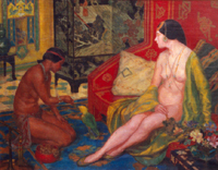 HADDON HUBBARD SUNDBLOM "LOUNGING" OIL ON CANVAS, SIGNED AMERICAN, PAINTED IN FRANCE, C. 1925 |