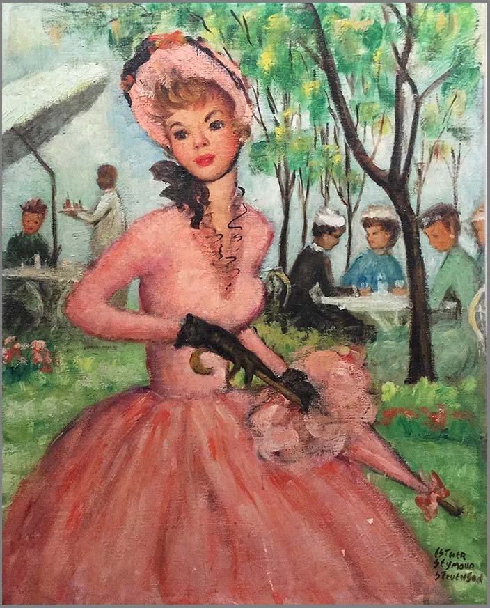 Esther Seymour Stevenson 19th-20th Century Stevenson was an American painter in an impressionist style who painted many scenes of Paris and portraits. She attended the School for the Art Institute of Chicago for formal training. In 1950, she went to Paris, France and her work of that time includes Paris street scenes such as Rainy Day in Paris and Street in Montmartre. |